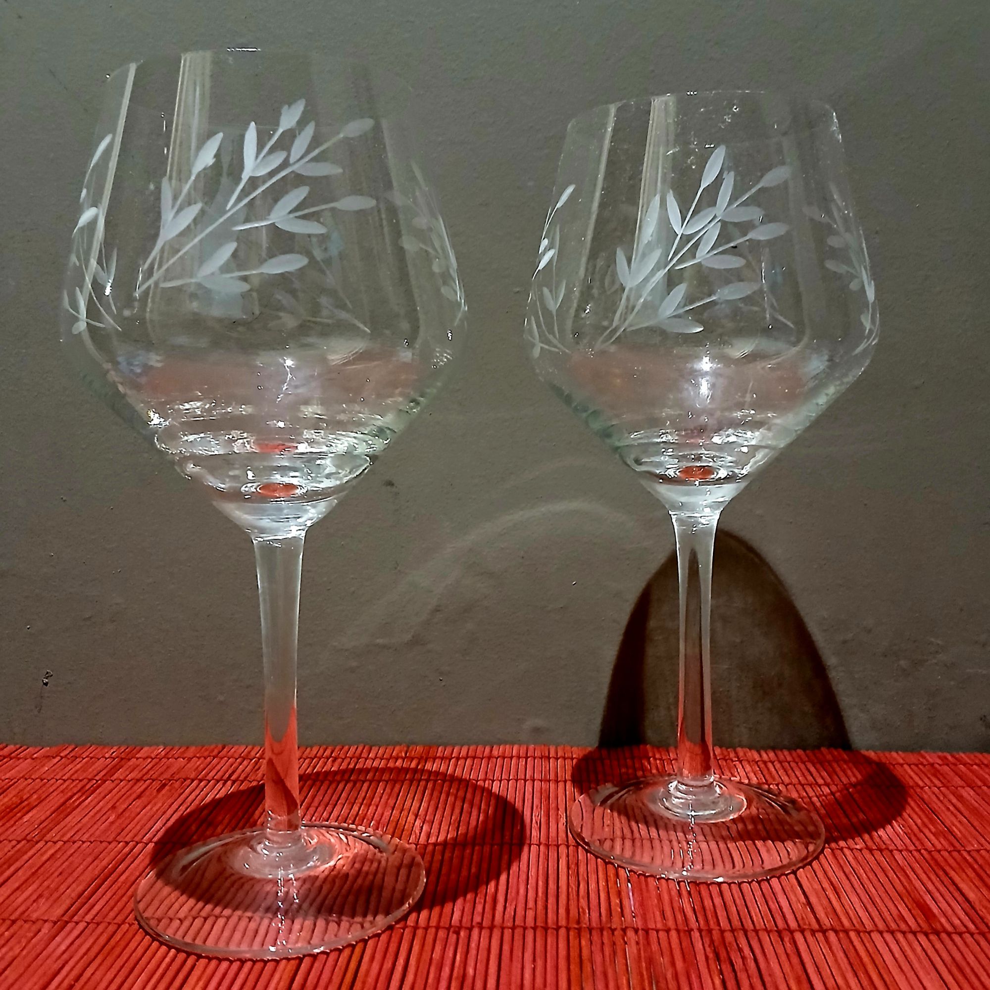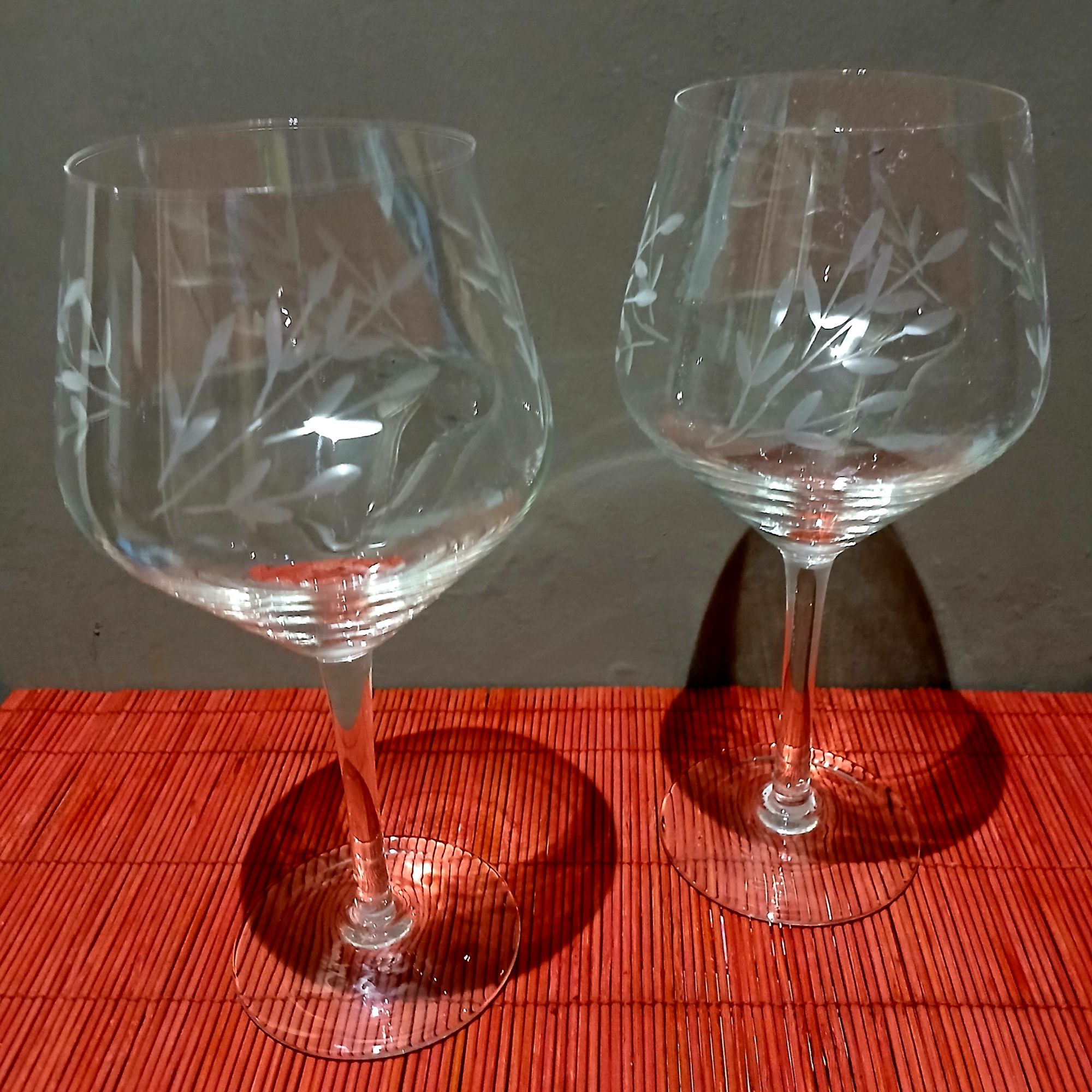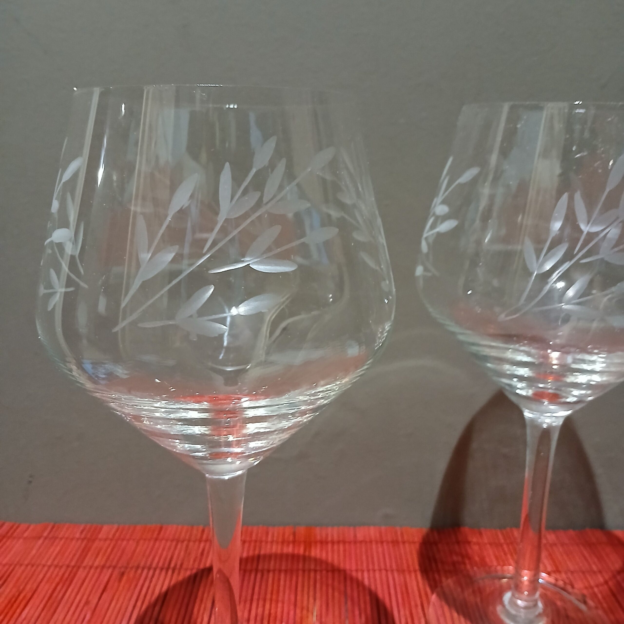 Copa de cristal nacional corte frio tallado a mano hojitas Capacidad 600 ml Alt 22 cm