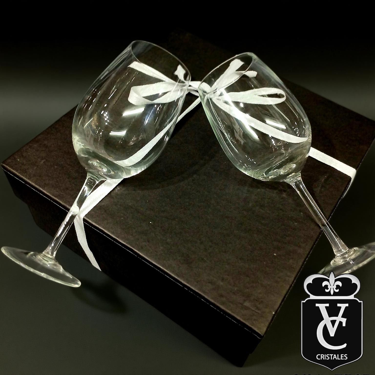 juego de 2 copas grabadas con inicial o npmbre en caja de regalo especial