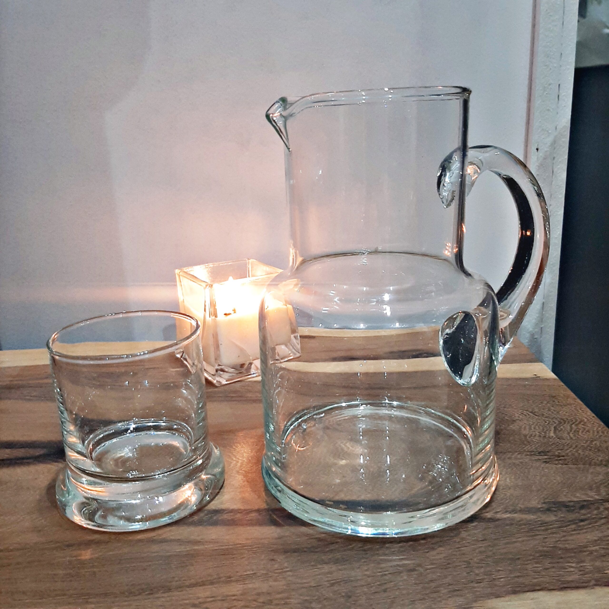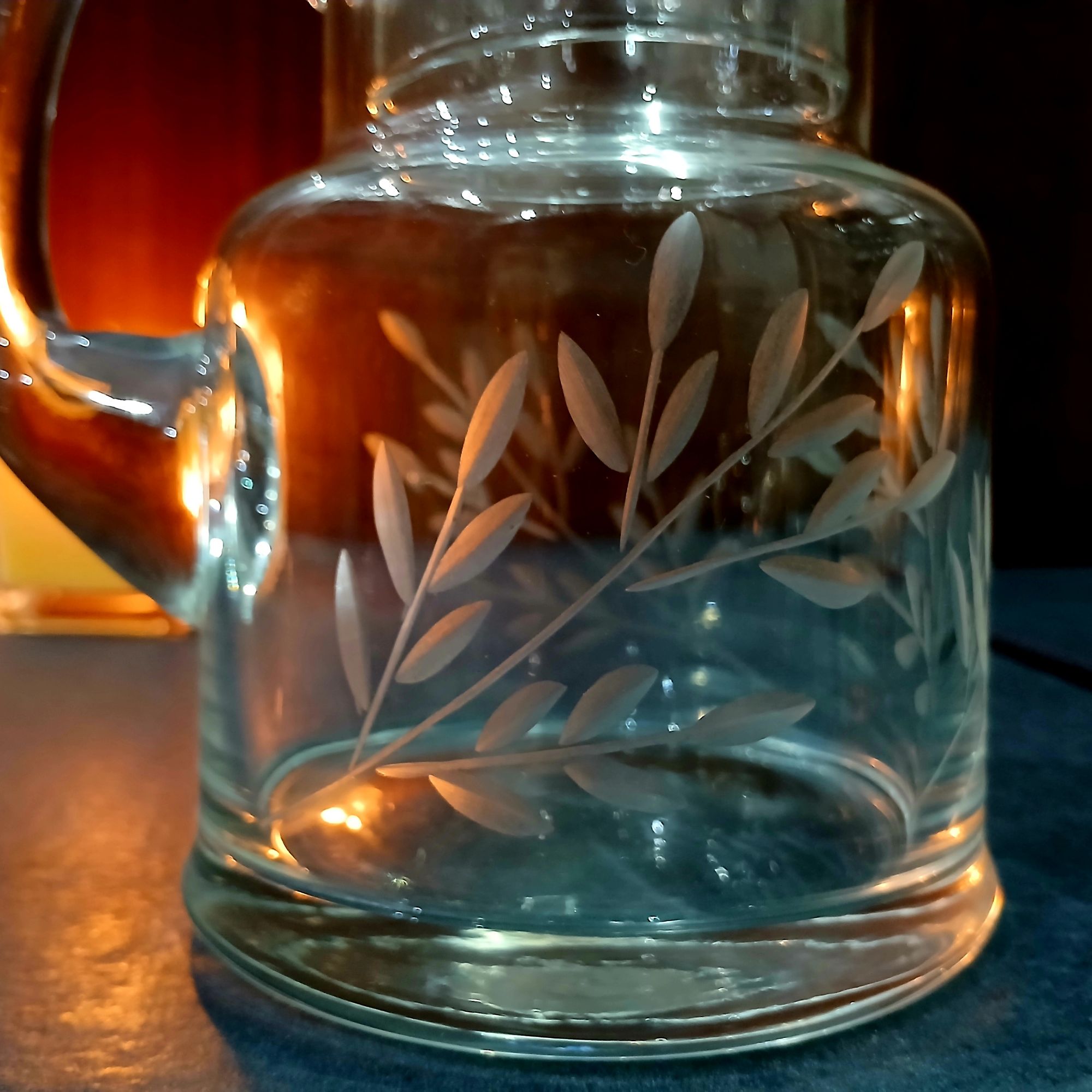 jarra de noche con asa tallado a mano con vaso de tapa