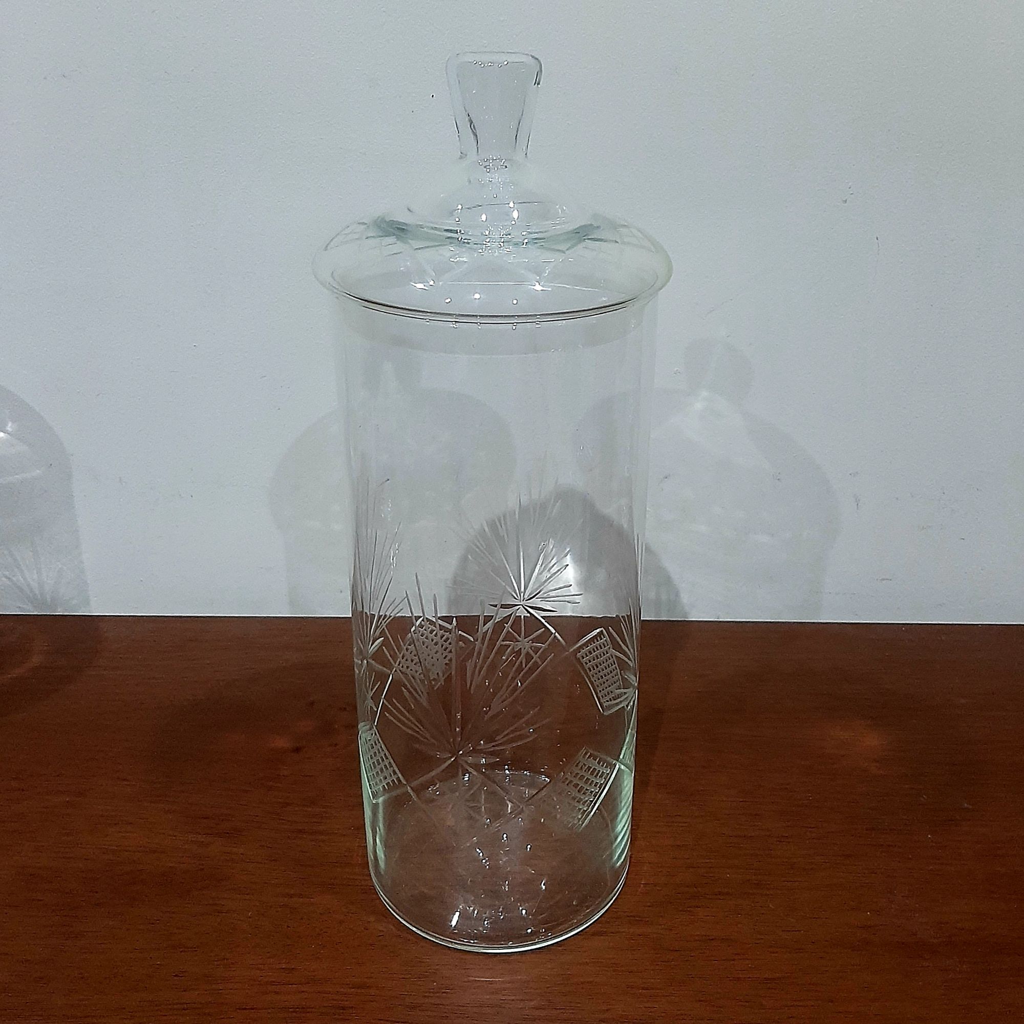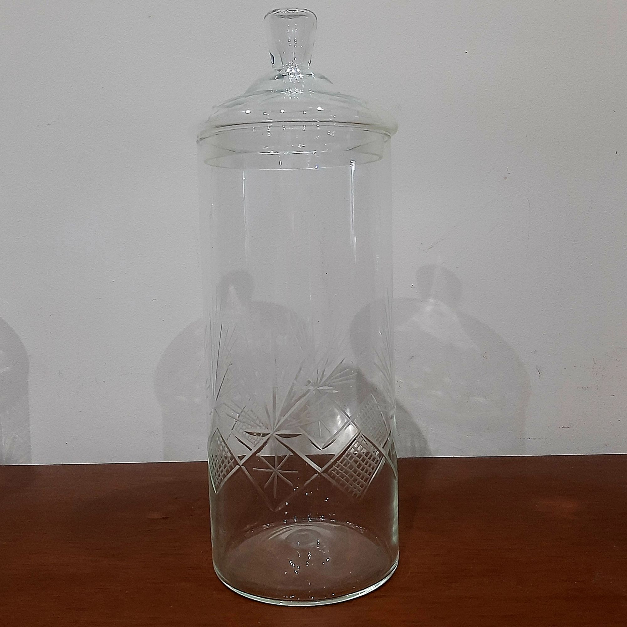 recipiente cilindrico de 13 cm de diametro y 30 cm de altura tallado a mano.