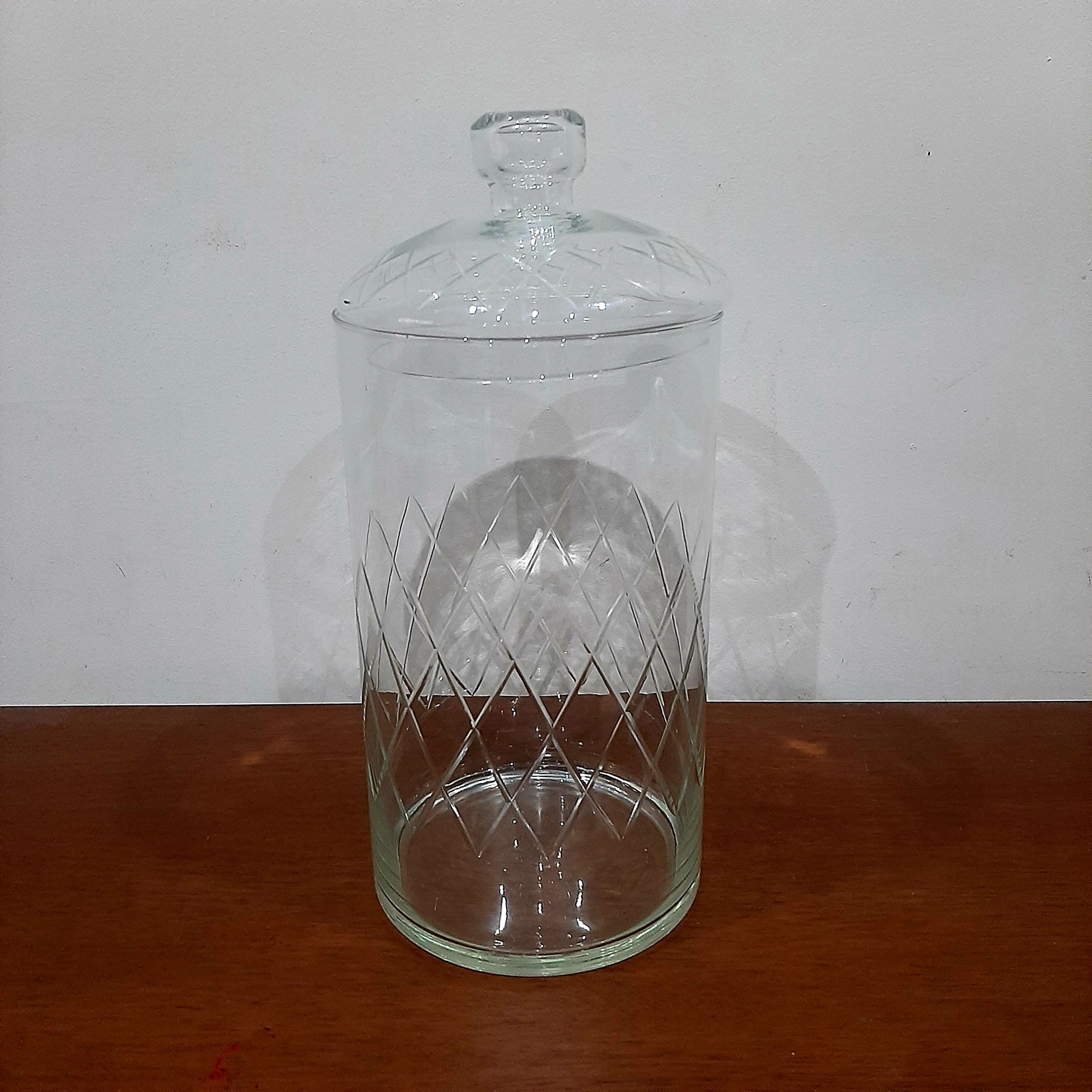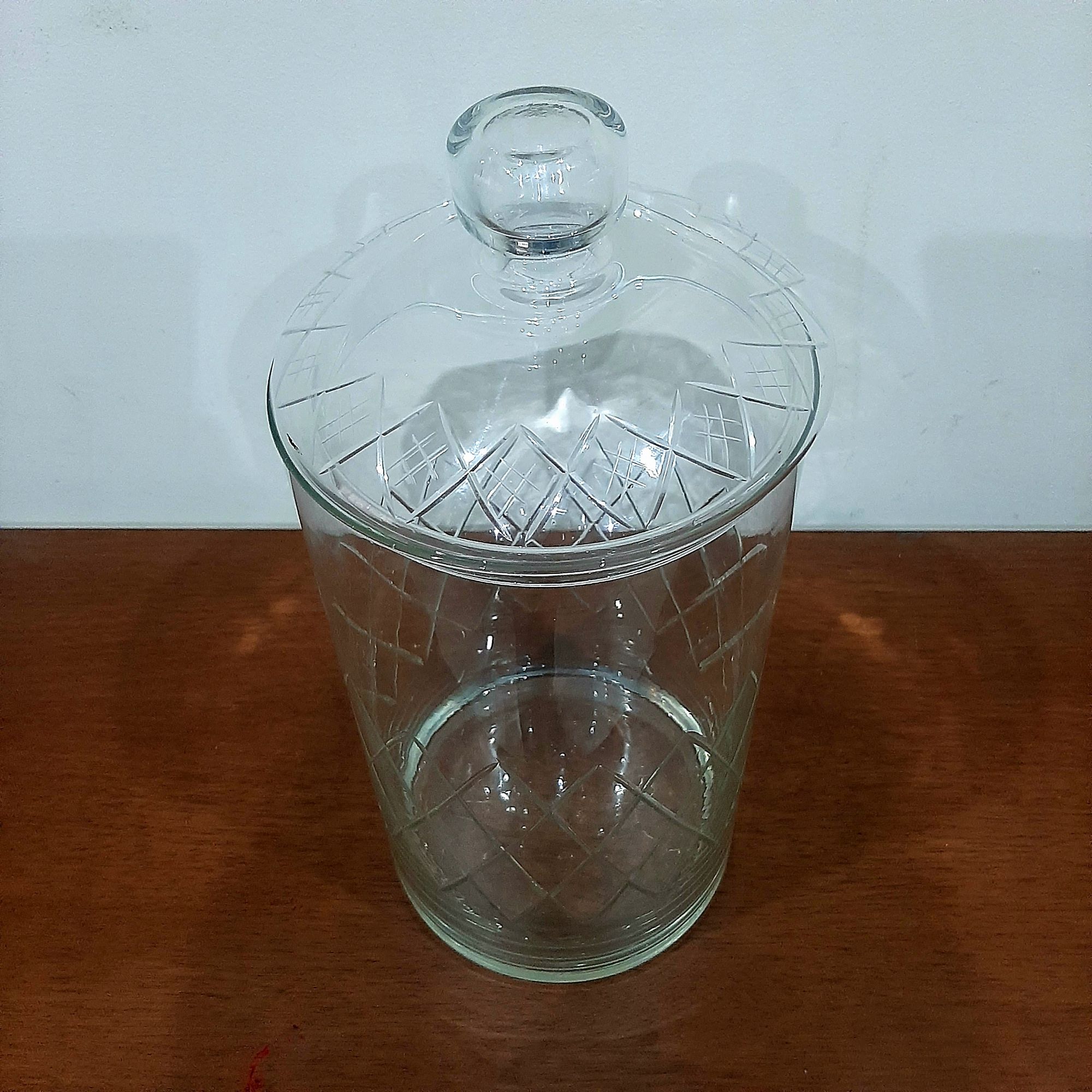 recipiente cilindrico de 17 cm de diametro y 30 cm de altura tallado a mano.