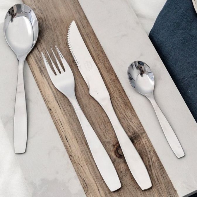 Las líneas de cubiertos Nicols son fabricadas completamente en acero inoxidable, llevando a tu mesa diseño sobrio y elegante para homenajear todos los días a tu familia y tus invitados.
