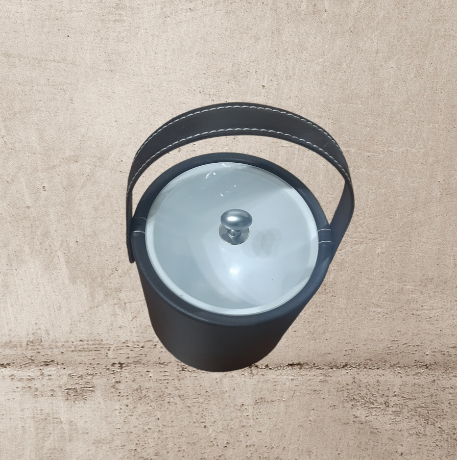 balde conservadora de acrilico 2 lts con ecocuero doble costura asa de acero inoxidable