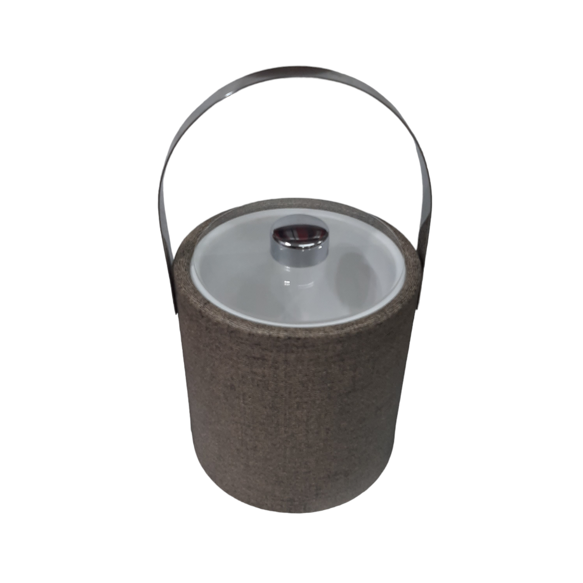 balde conservadora de acrilico 2 lts con yute ecologico sin costura moarron asa de acero inoxidable