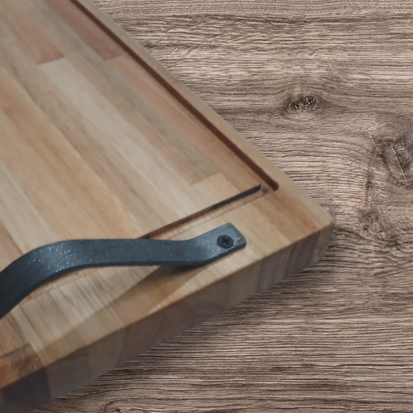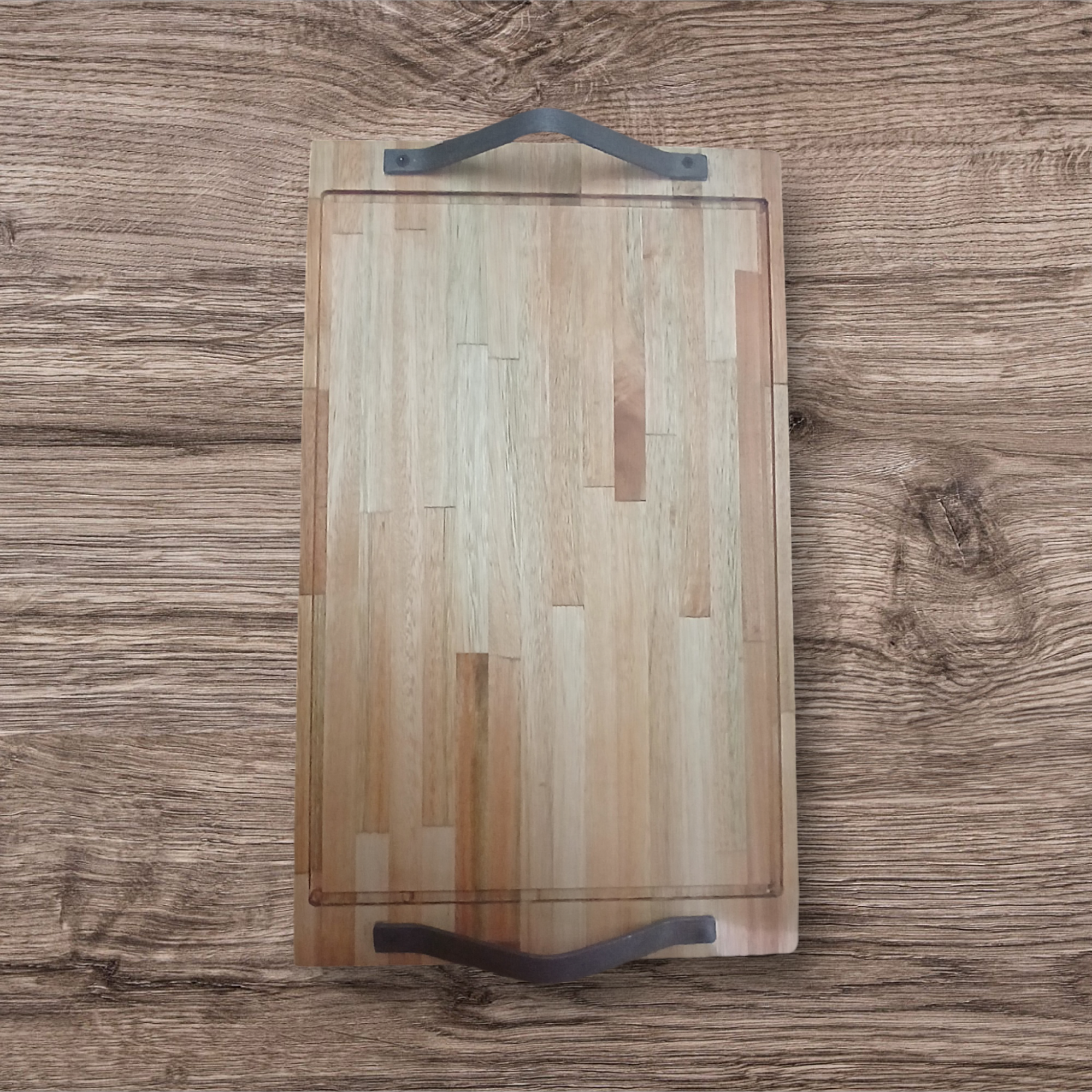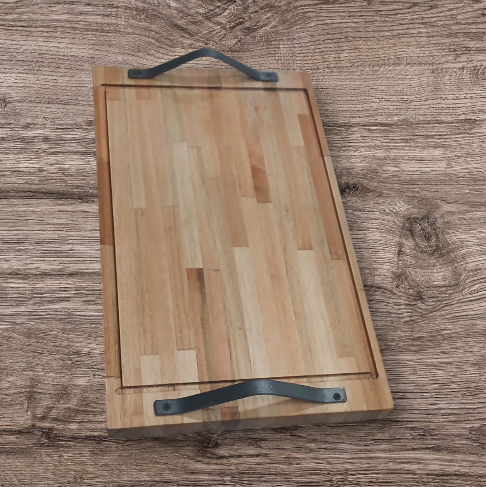 tabla de asado eucalipto entablonado de 50 x 30 x 3 cm con asa de hierro